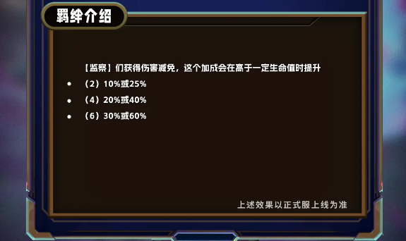 Buff-Effekt : [Monitore] erhalten eine Schadensreduzierung. Dieser Bonus erhöht sich, wenn der Gesundheitswert über einem bestimmten Wert liegt.