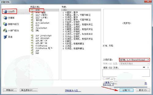 3. Wählen Sie im neuen Dokumentfenster „Leere Seite“ – „HTML“, wählen Sie als Dokumenttyp „XHTML1.0-Übergang“ und klicken Sie auf die Schaltfläche „Erstellen“.