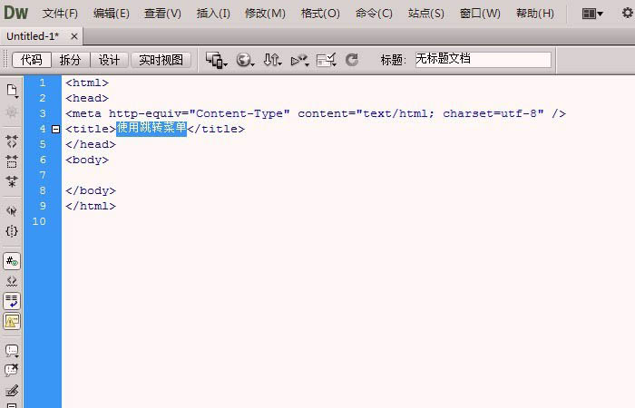 1. Öffnen Sie die Dreamweaver-Software, wählen Sie mit der linken Maustaste „Neu [HTML]“ aus und ändern Sie im Codefenster das Titel-Tag der Webseite, indem Sie beispielsweise das Sprungmenü verwenden, wie in der folgenden Abbildung dargestellt.