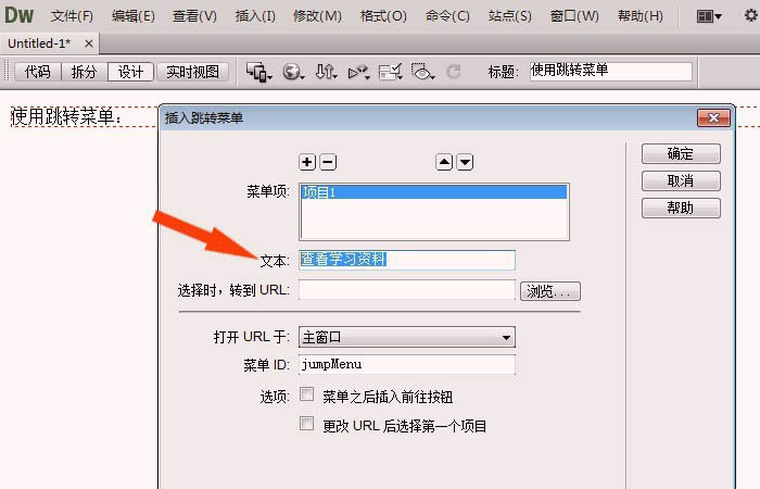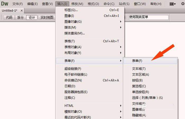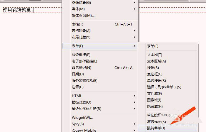 Wenn Dreamweaver eine Webseite erstellt, gibt es normalerweise ein Formular zum Senden von Daten, und manchmal ist es notwendig, dem Formular als Eingabe ein Sprungmenü hinzuzufügen. Wie erstelle ich ein Sprungmenü? Werfen wir einen Blick auf die detaillierte Produktionsmethode.