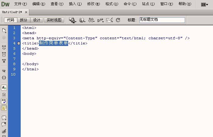 1. Öffnen Sie die Dreamweaver-Software, klicken Sie mit der linken Maustaste und wählen Sie „Neu [HTML]“. Ändern Sie im Codefenster das Titel-Tag der Webseite, indem Sie beispielsweise ein einfaches Formular erstellen, wie in der Abbildung unten gezeigt.