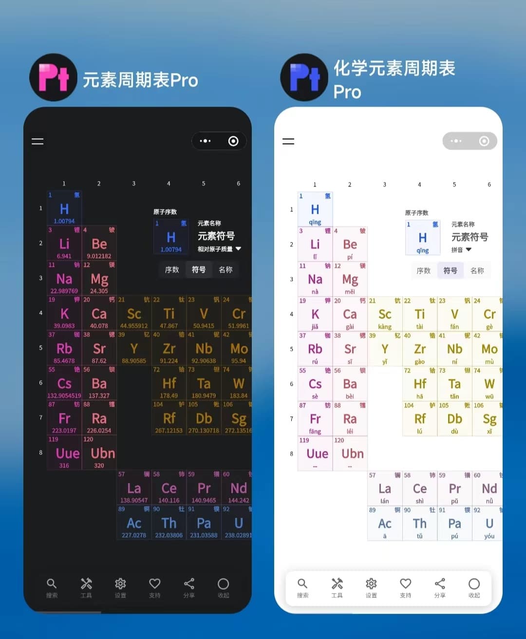 Periodic Table Pro is an original chemical periodic table tool carefully created by Huanyang. It adopts a new design style and supports various platforms such as Web (H5), WeChat mini program, QQ mini program and Alipay mini program, and is suitable for screen devices of different sizes.