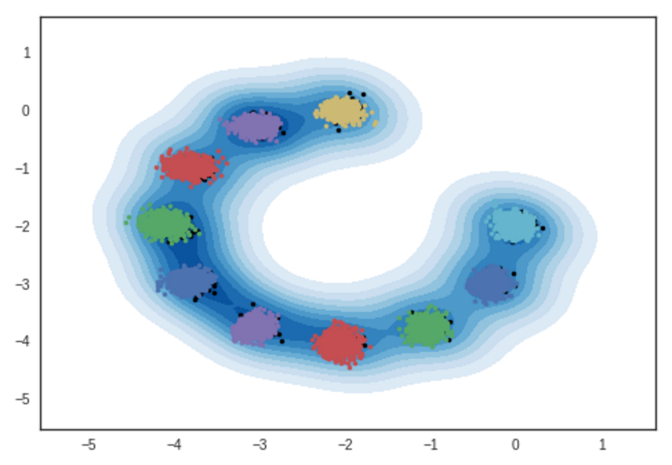 Result of samples from 2-dimensional Gaussian mixture models. IPython notebook