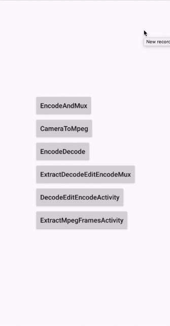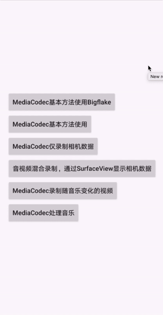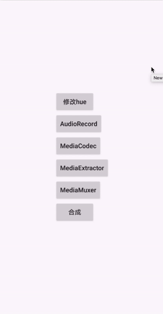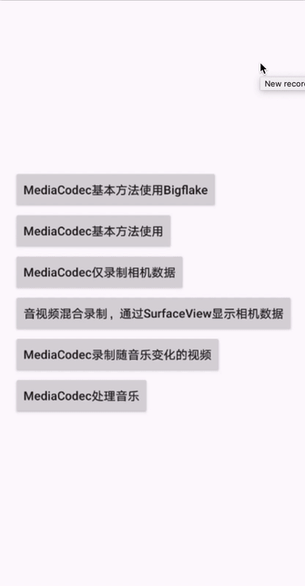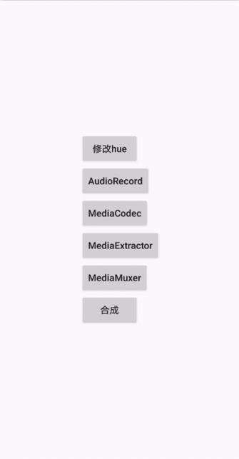 The use of single points mainly includes MediaCodec, AudioRecord, MediaExtractor, and MediaMuxer. The interface effect is as follows: