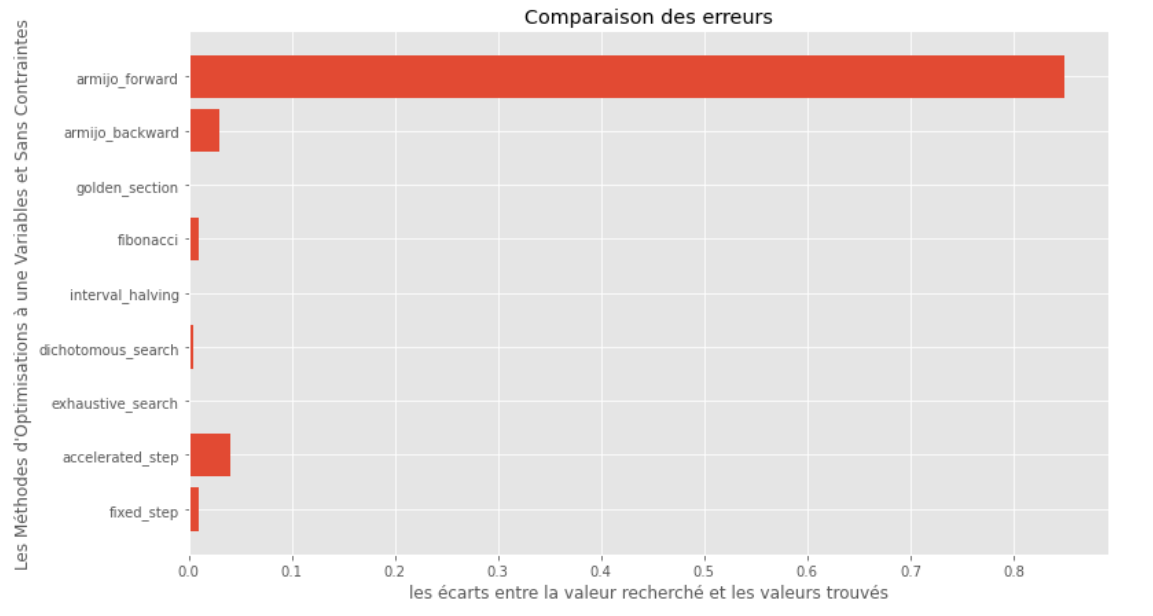 Implementation of one-variable optimization algorithms, encompassing fixed_step, accelerated_step, exhaustive_search, dichotomous_search, interval_halving, Fibonacci, golden_section, Armijo_backward, and Armijo_forward.