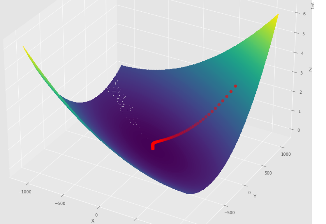 pm3.gradient_descent(h,X,tol,alpha)Y* = [-1.01 1.51]