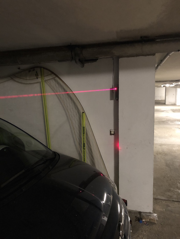 It occurred to me that alternative to protect access to the community garage square without having to install physical separations. It is about making visible a virtual barrier that detects and notifies intrusions.