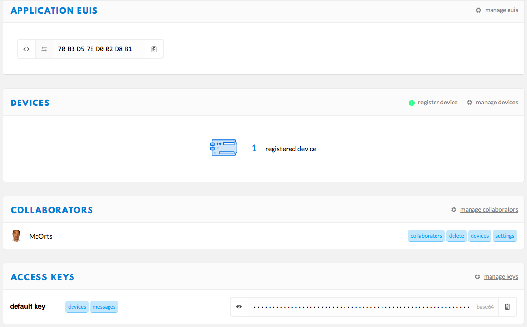 Devices such as this sensor communicate with the application in which they have been registered. For you register a device, you must first add an application.