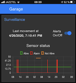 The final result is a responsive screen where we are shown the last event, the historical and the possibility of deactivating the notices. We will access the same URL as for the administration but with the suffix/UI: http://192.168.1.???:1881/ui