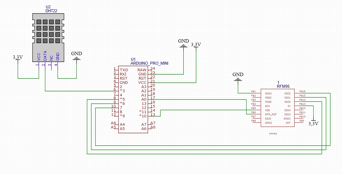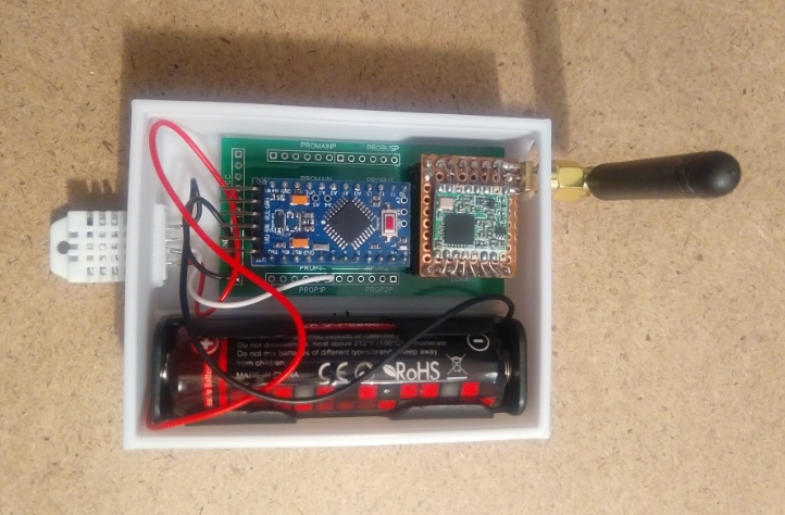 Arduino Pro Mini TTN LoRaWAN Node with DHT22 and RFM95 module powered by an 18650 protected battery.