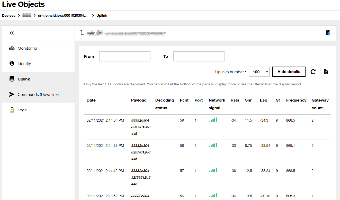 DevEUI : 0xXXXXXXXXXXXXXXXX