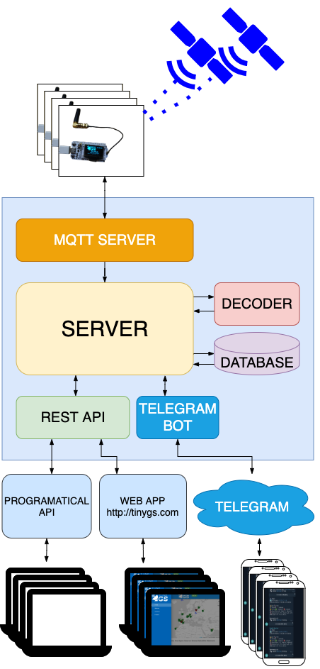 Tinygs is defined as an open network of land stations distributed throughout the world to receive and operate LORA satellites, weather probes and other flying objects, using cheap and versatile modules. Unlike others, great knowledge is required in telecommunications or radio amateur licenses. It is oriented on the one hand to the participation of people in the Maker world without great technical demands. And on the other to serve the satellite operators receiving telemetry and other data in real time thanks to the world deployment of the stations network.