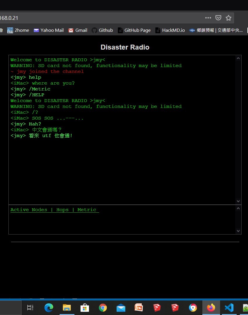 Disaster-Radio builtin Web interface w/ LoRa32v1 module, codes are in PlatformIO/project/firmware folder.