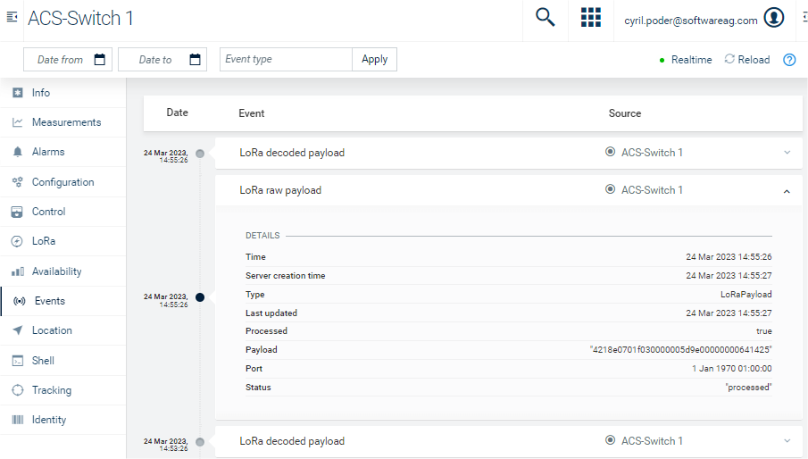 Uplink events will also be available on the devices in a form that contains the fport, the payload in hex format, whether the payload was processed or not and other relevant information.