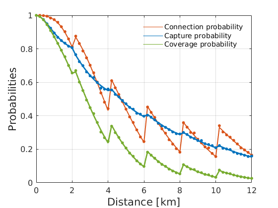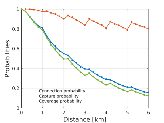 The basic_script.m implements the Monte Carlo simulation of the proposed system which validates the mathematical analysis. Executing the script generates the aforementioned plots for a specific radius.