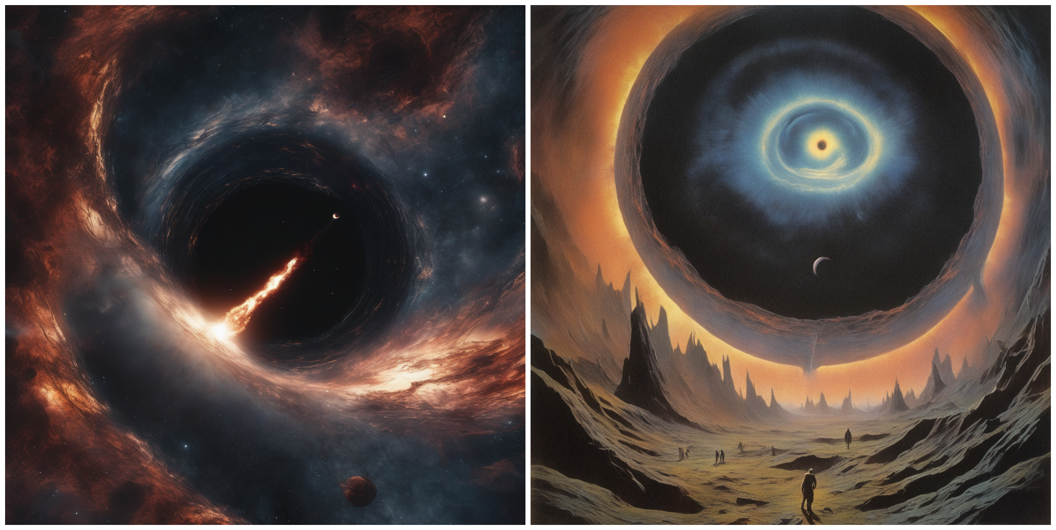 "A picture of a supermassive black hole, devouring the galaxy, cinematic picture"