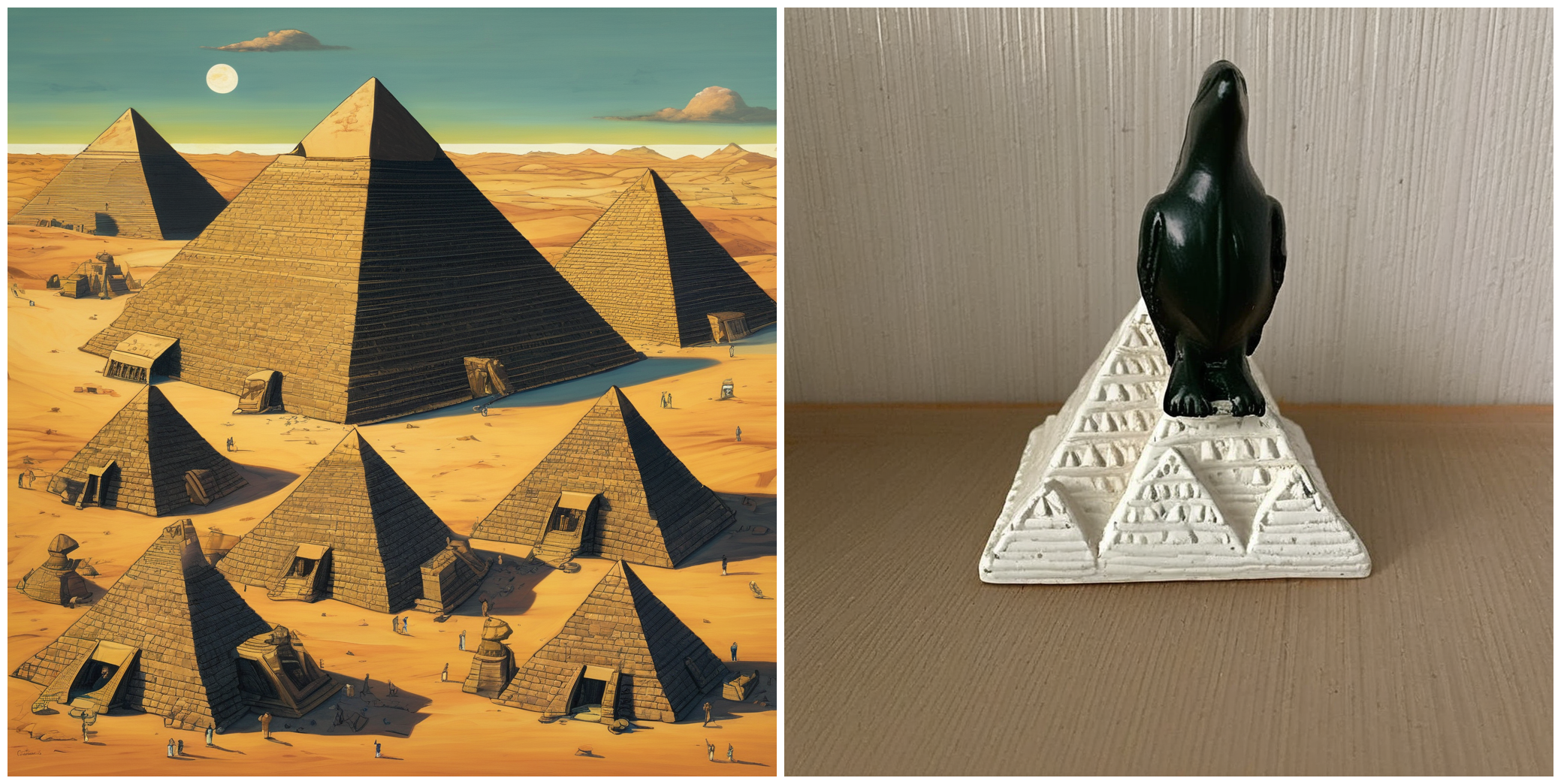 "A painting of the great pyramids in the style of <skull_lamp>."