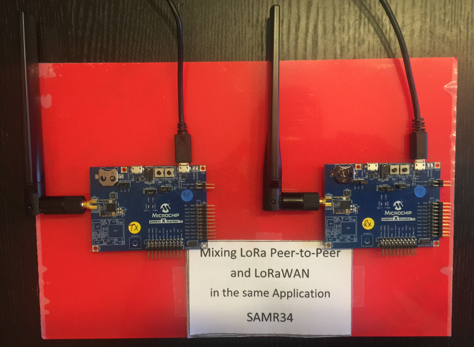 Based on LoRaWAN Mote Application generated from ASFv3, this sample code demonstrates the coexistence of a LoRaWAN Application and a pure radio communication between 2x ATSAMR34 Xplained Pro boards using LoRa modulation.