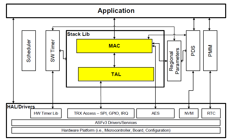 The TAL layer uses the radio drivers and provides access to the SX1276 transceiver.