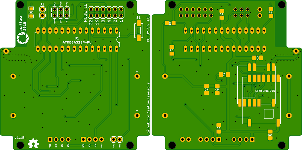| U2 / U3 | Si7021 / BME280 sensor | Two footprints for different pin orders. See Supported sensors for more info. | |||
