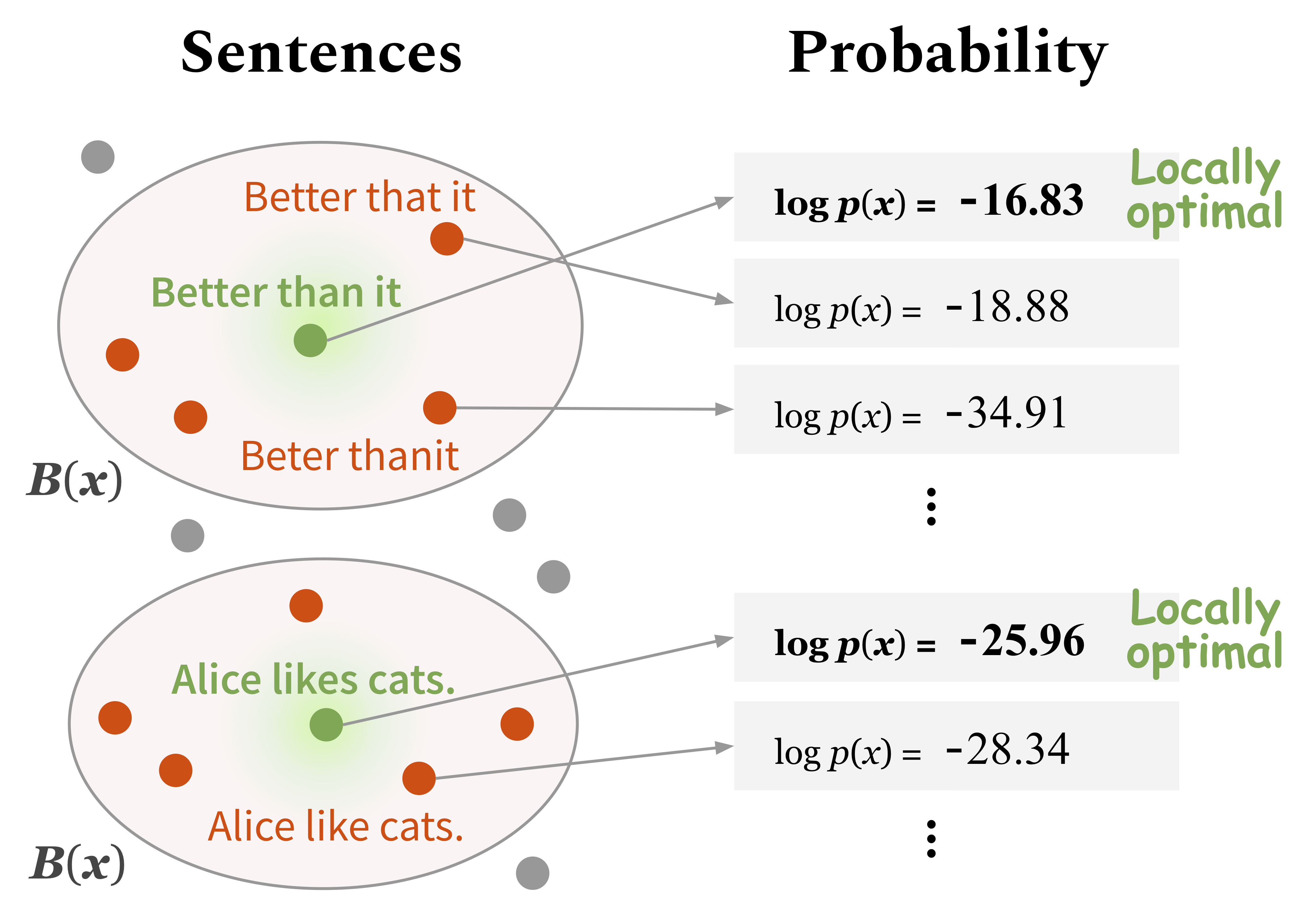 }We developed a new method to use a pretrained language model (e.g. GPT2) to predict if a sentence is grammatical, which we call LM-Critic. You can play with this LM-Critic as described in Section 1. below. The idea is to deem a sentence to be grammatical if the language model assigns it a higher probability than candidates in its local neighborhood.