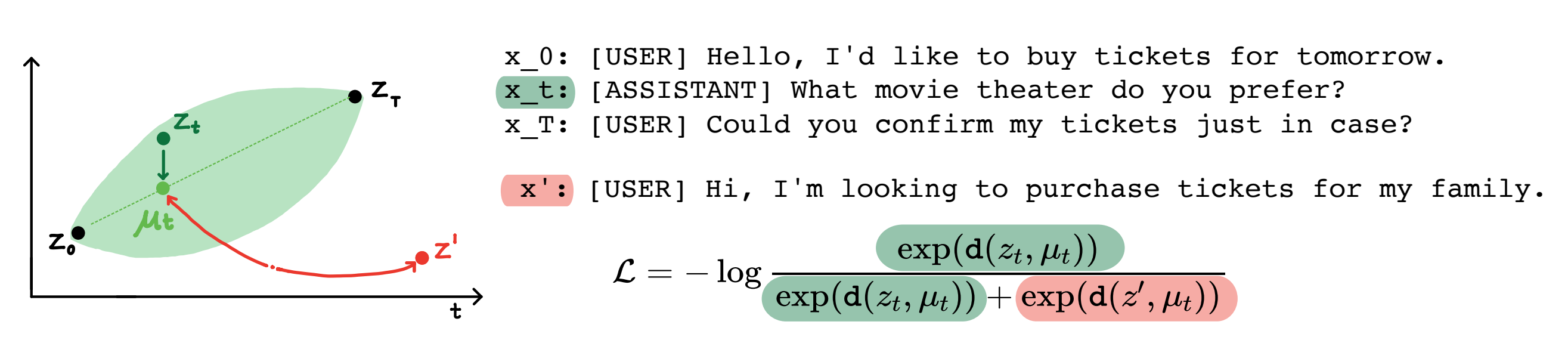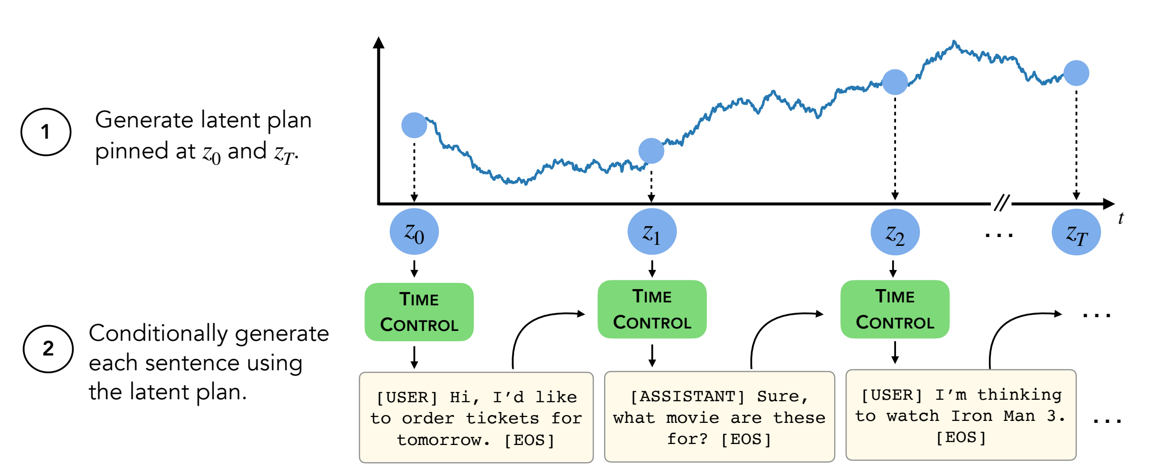 Abstract: Modern language models can generate high-quality short texts. However, they often meander or are incoherent when generating longer texts. These issues arise from the next-token-only language modeling objective. Recent work in self-supervised learning suggests that models can learn good latent representations via contrastive learning, which can be effective for discriminative tasks. Our work analyzes the application of contrastive representations for generative tasks, like long text generation. We propose one approach for leveraging constrastive representations, which we call Time Control (TC). TC first learns a contrastive representation of the target text domain, then generates text by decoding from these representations. Compared to domain-specific methods and fine-tuning GPT2 across a variety of text domains, TC performs competitively to methods specific for learning sentence representations on discourse coherence. On long text generation settings, TC preserves the text structure both in terms of ordering (up to +15% better) and text length consistency (up to +90% better).