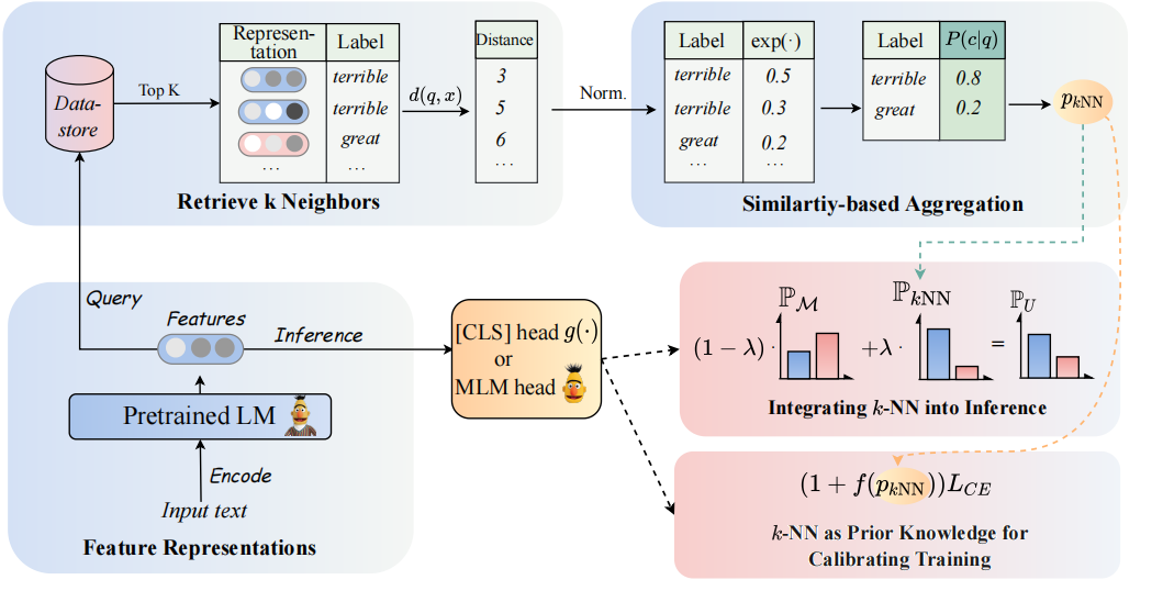 (1) Leverage the k-NN as the prior knowledge for calibrating the training process.