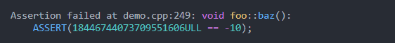 ASSERT ( 18446744073709551606ULL == - 10 );