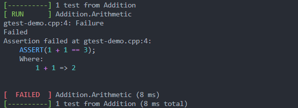 Salida de ejemplo de GTEST: