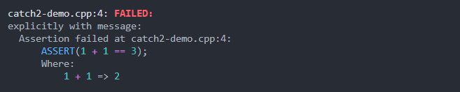 Libassert proporciona dos encabezados <libassert/assert-catch2.hpp> y <libassert/assert-gtest.hpp> para usar con Catch2 y Googletest.