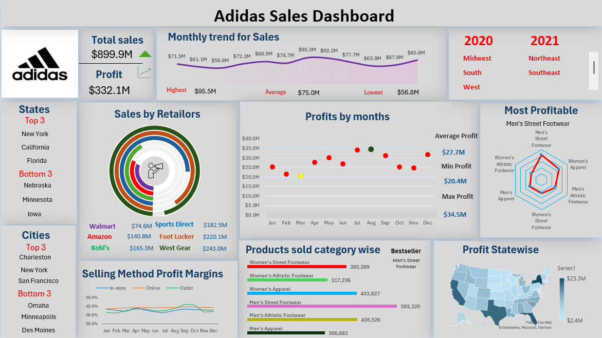 El objetivo de este proyecto es analizar los datos de ventas de Adidas y crear un tablero.