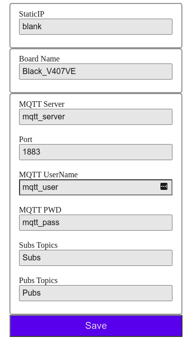 FlashStorage_STM32-main.zip .FlashStorage_STM32-mainFlashStorage_STM32-main entier dans le répertoire des bibliothèques Arduino tels que ~/Arduino/libraries/ . Pour les cartes Generic STM32F4 series , telles que STM32F407VE , en utilisant LAN8720 , veuillez utiliser STM32 Core v2.2.0 car Breaking Core v2.3.0 crée l'erreur de compilation.