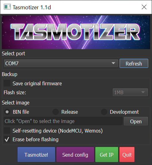 Ensuite, exécutez simplement tasmotizer.py ou python3 -m tasmotizer.py à partir de la ligne Shell / Commande