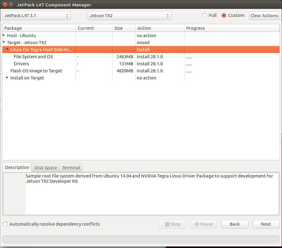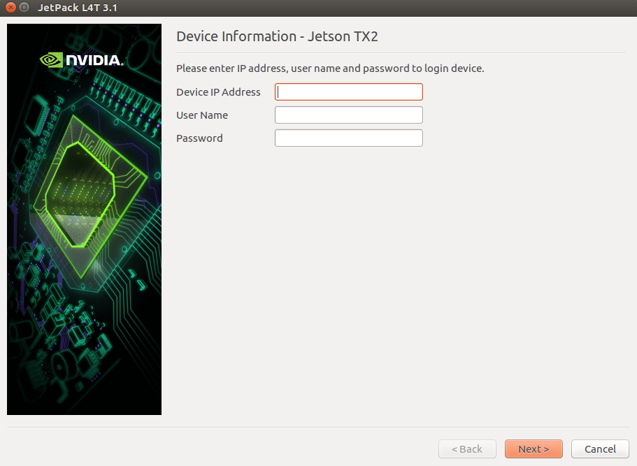 Connectez le TX2 et le transporteur (ou Dev-Kit) à l'ordinateur via USB en suivant les instructions du manuel approprié.