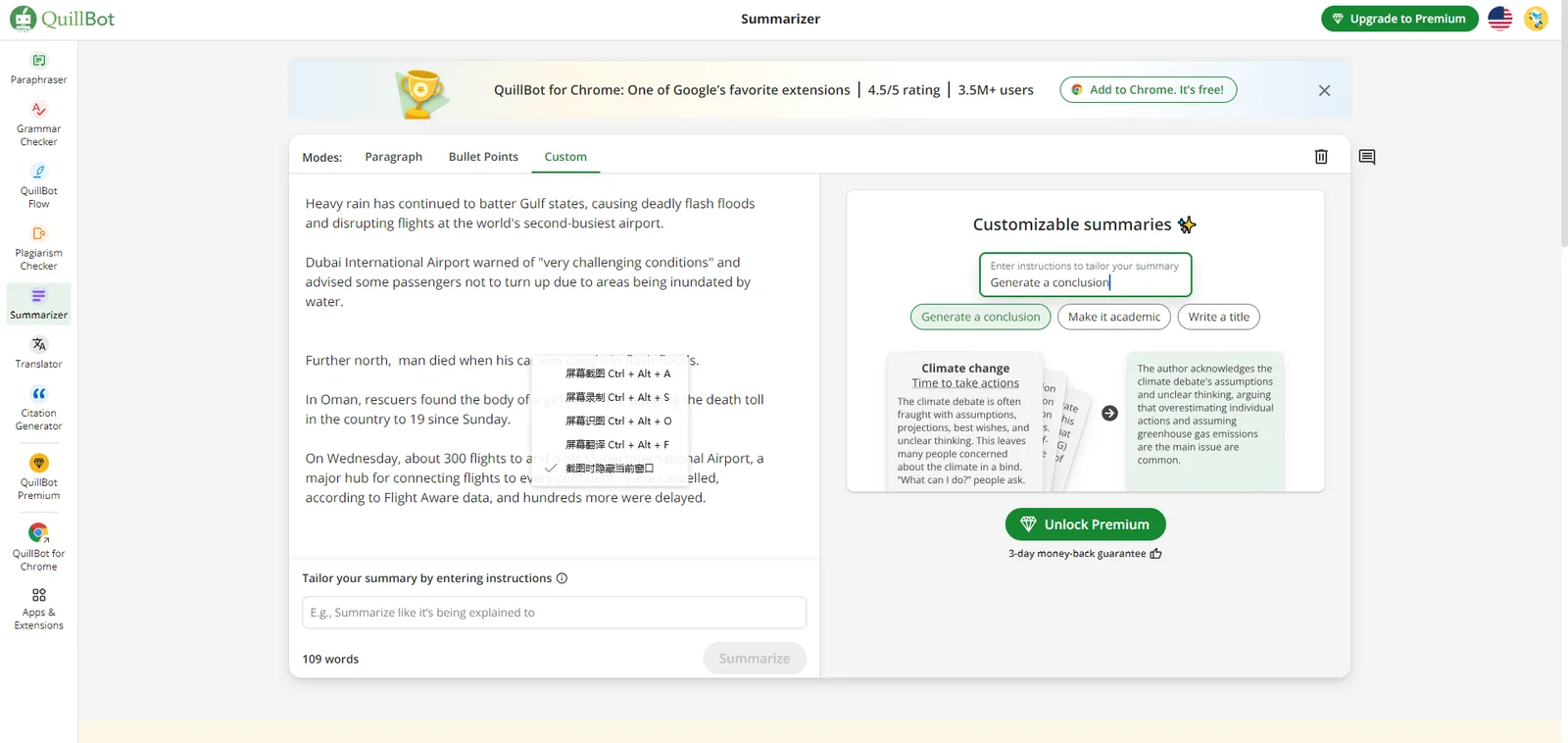 QuillBot を使用する前に、まず Web ページの翻訳をサポートするブラウザを選択できます。 (たとえば、Google Chrome、Microsoft Edge では、一般的に、「中国語に翻訳」を右クリックすると、ページ全体の翻訳が完了します)