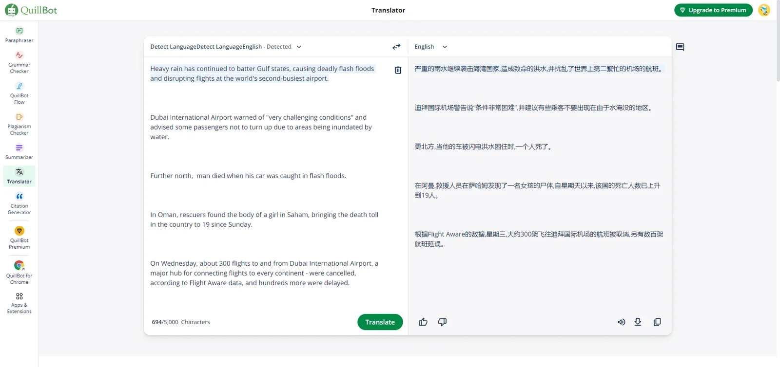 QuillBotのページ表示は中国語に対応していませんが、一部の機能は中国語に対応しています。