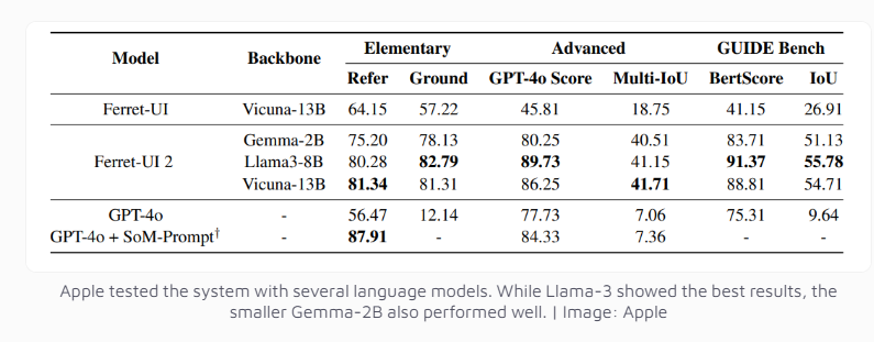 Apple は最近、新世代の人工知能システムである Ferret-UI2 をリリースしました。このクロスプラットフォーム AI アシスタントは、UI 要素認識において大きな進歩を遂げ、テスト スコアは 89.73 で、GPT-4V の 77.73 ポイントを大きく上回り、優れたパフォーマンスを示しました。