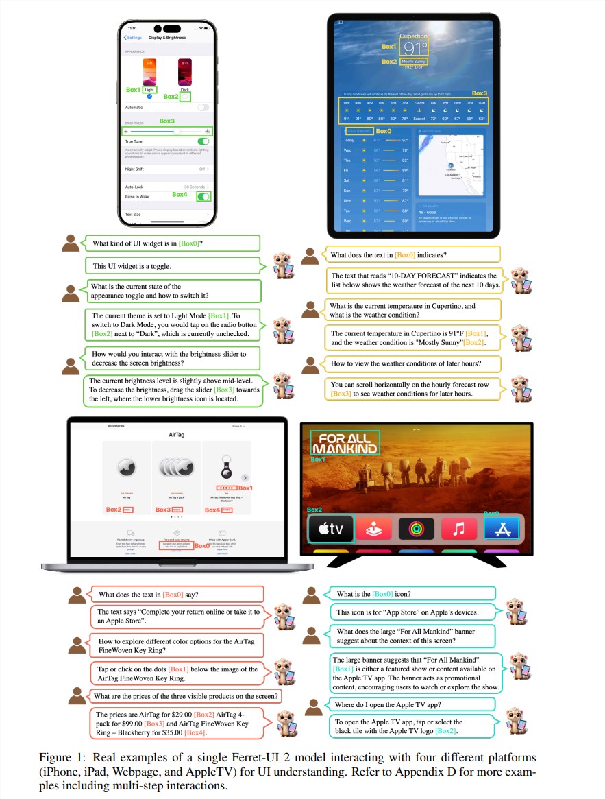 技術的なアーキテクチャの面では、Ferret-UI2 はアダプティブ デザインを採用しており、iPhone、iPad、Android デバイス、Web ブラウザ、Apple TV などの複数のプラットフォーム上の UI 要素を正確に識別できます。このシステムには、さまざまなプラットフォームに応じて画像解像度と処理要件を自動的に調整できるインテリジェントなアルゴリズムも装備されており、情報の整合性を維持しながらローカルのコンピューティング効率を確保します。
