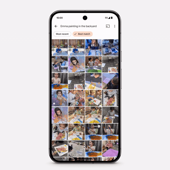 「Ask Photos」をより使いやすくするために、Googleは従来の検索機能もアップグレードしています。ユーザーは、「アリスと私は笑っていた」や「湖でカヤックをしている」などの自然言語を使用して検索できます。検索結果は日付や関連性によって並べ替えることもできます。この機能は現在、Android および iOS プラットフォームで英語で利用できますが、今後数週間でさらに多くの言語がサポートされる予定です。