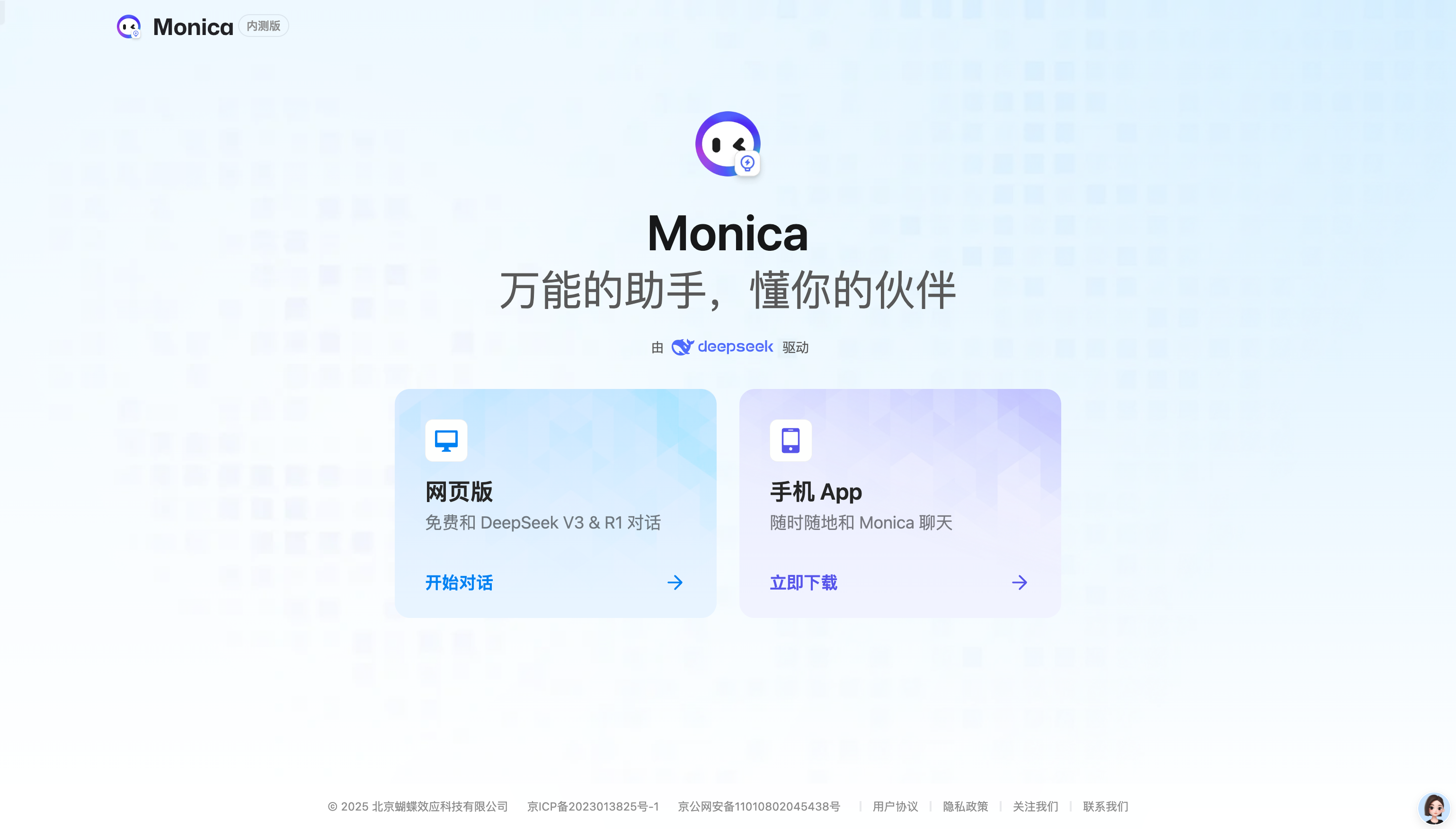今年2月、モニカの中国語版は正式に内部テストを開始し、国内ユーザーに無料ですぐに開設されました。このバージョンは、深い推論機能を備えたDeepSeek R1およびV3モデルに基づいており、メモリ関数とリアルタイムインターネット検索をサポートし、ユーザーによりインテリジェントエクスペリエンスを提供します。