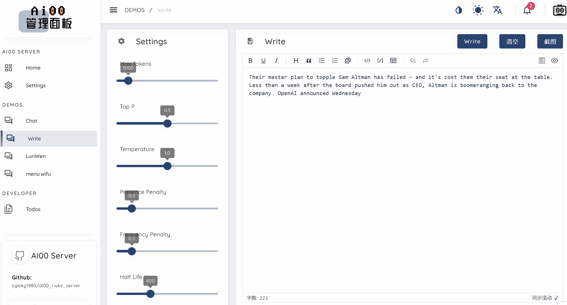 $ git clone https://github.com/cgisky1980/ai00_rwkv_server.git