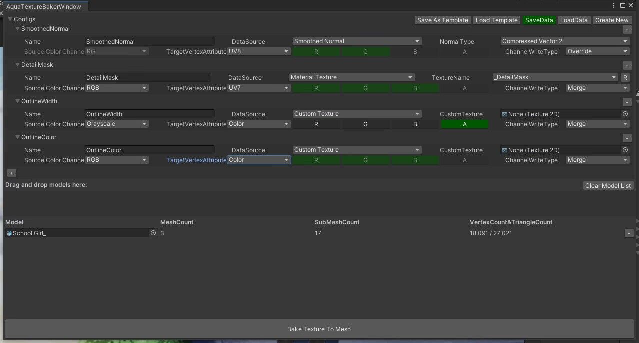 텍스처 베이커는 텍스처를 메쉬에 굽을 수 있습니다.
