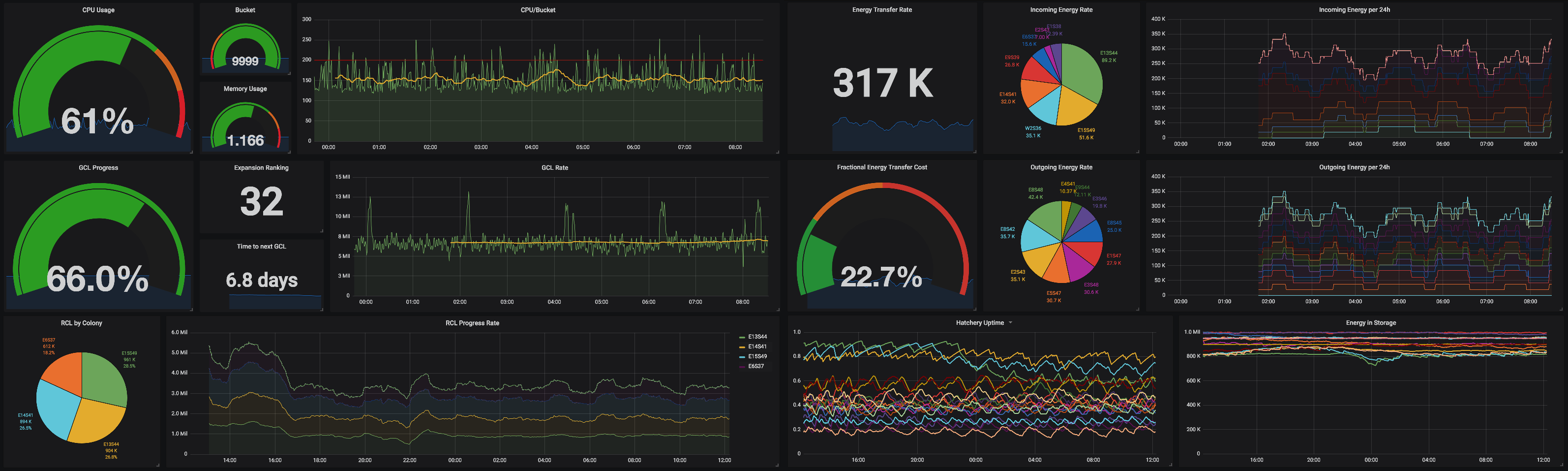오버용에는 자세한 작동 통계를 추적하는 Grafana 대시 보드 (아래 표시)가 포함되어 있습니다. 대시 보드를 설정하려면 :