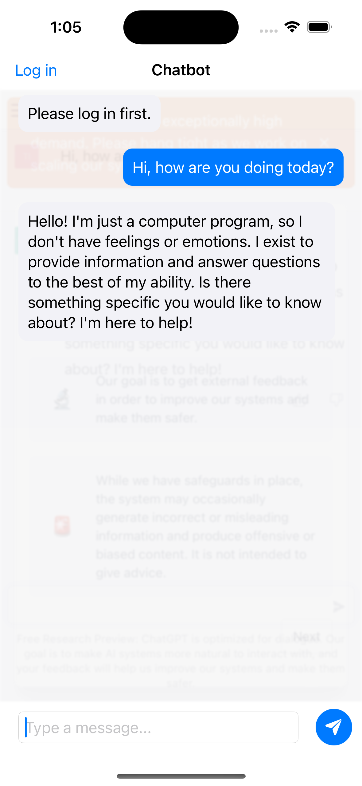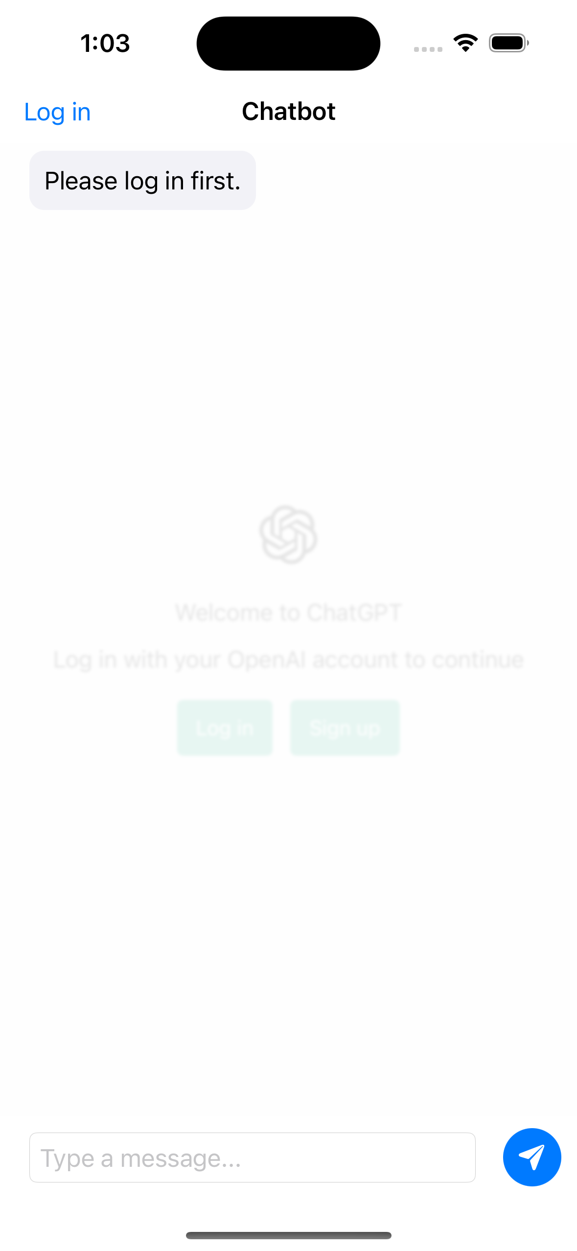백엔드 서비스가 필요하지 않고 Swiftui, WebKit WebView 및 JavaScript를 사용하여 ChatGpt와 상호 작용하는 iOS 응용 프로그램입니다.