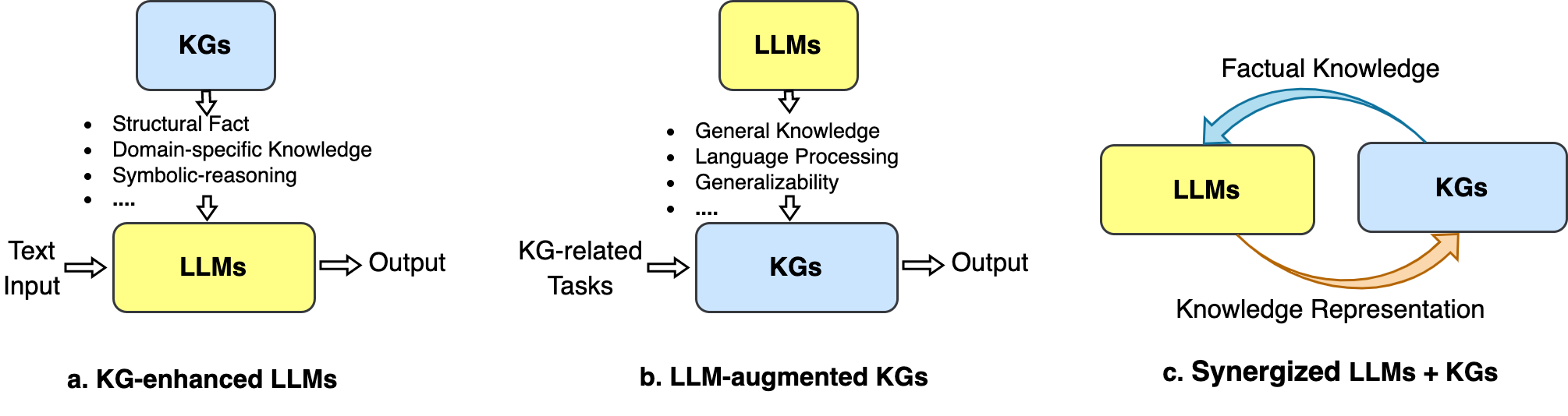 - 우리의 로드맵 논문 : 대형 언어 모델 및 지식 그래프를 통합 : 로드맵이 공개되었습니다.