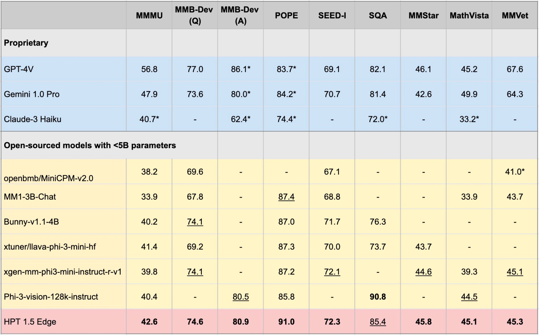 Edge 장치에 맞게 조정 된 최신 Open-Sources 모델로 HPT 1.5 Edge를 출시합니다. 크기 (<5b)에도 불구하고 Edge는 매우 효율적이면서 인상적인 기능을 보여줍니다. 우리는 Apache 2.0 라이센스에 따라 Huggingf