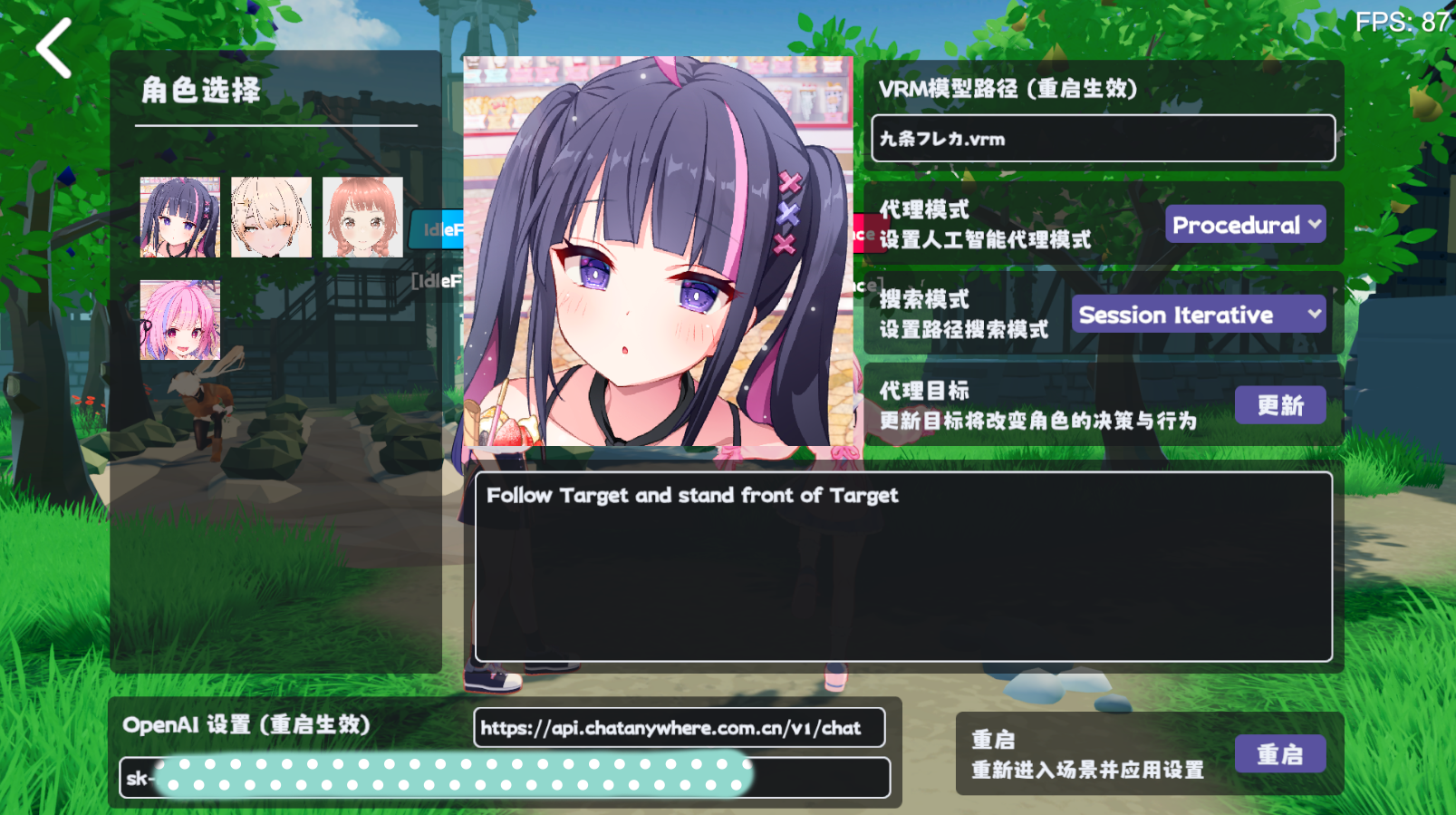 실험은 OpenAI의 ChatGpt3.5를 추론 모델로 사용합니다. 게임 설정 인터페이스에서 자신의 API 키를 작성해야합니다.