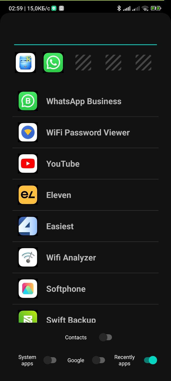 | 캐시를 사용하십시오 | 내부 저장소를 사용하여 시작 속도를 높입니다. 실제 데이터와의 동기화 (응용 프로그램/연락처 목록)는 옵션이 활성화 될 때 발생하고 'Reload Cache'요소를 클릭 할 때 발생합니다. 다른 경우에는 오래된 데이터가 표시 될 수 있습니다 (최근에 설치된 응용 프로그램/연락처 또는 이미 삭제 된 응용 프로그램/연락처가 있음) |