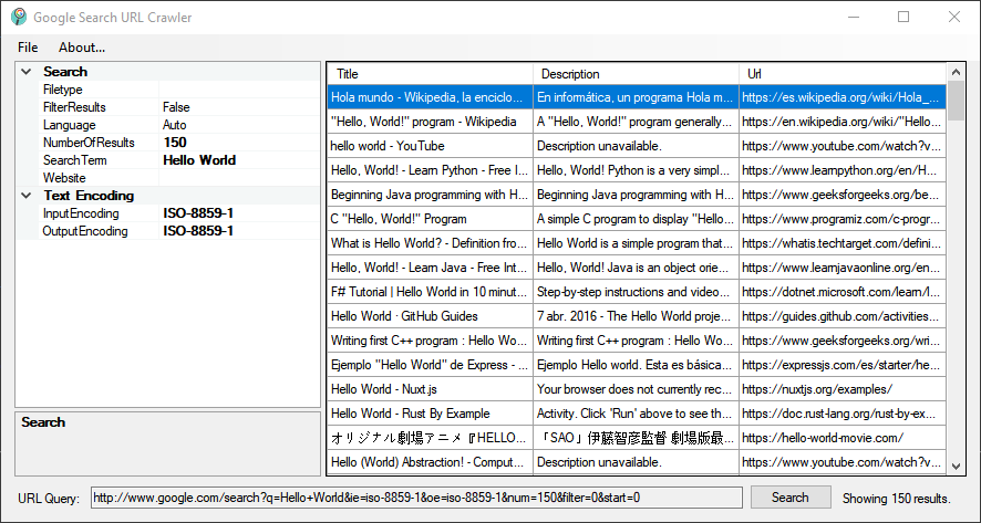 이 소프트웨어는 HTML 스크래핑 기술을 통해 Google 검색 엔진을 무료로 사용합니다. Google (Specialized) API를 사용하지 않으므로 Google이 무언가를 변경하면이 프로그램이 제대로 작동하지 않을 수 있습니다. 또한 Google이 새로운 요청을 거부 할 때까지 시간당 소량의 쿼리를 보내는 것으로 제한됩니다. 이 프로그램이 아니라 Google 정책에 대한 책임.