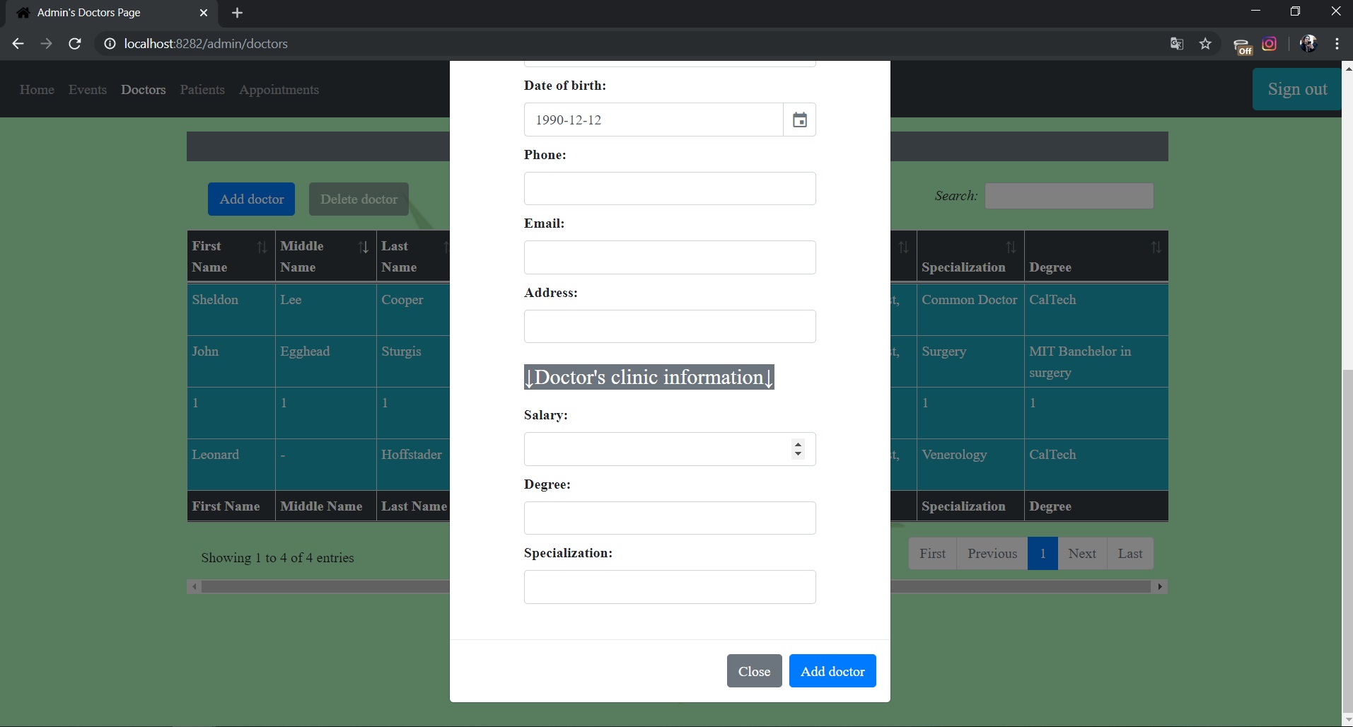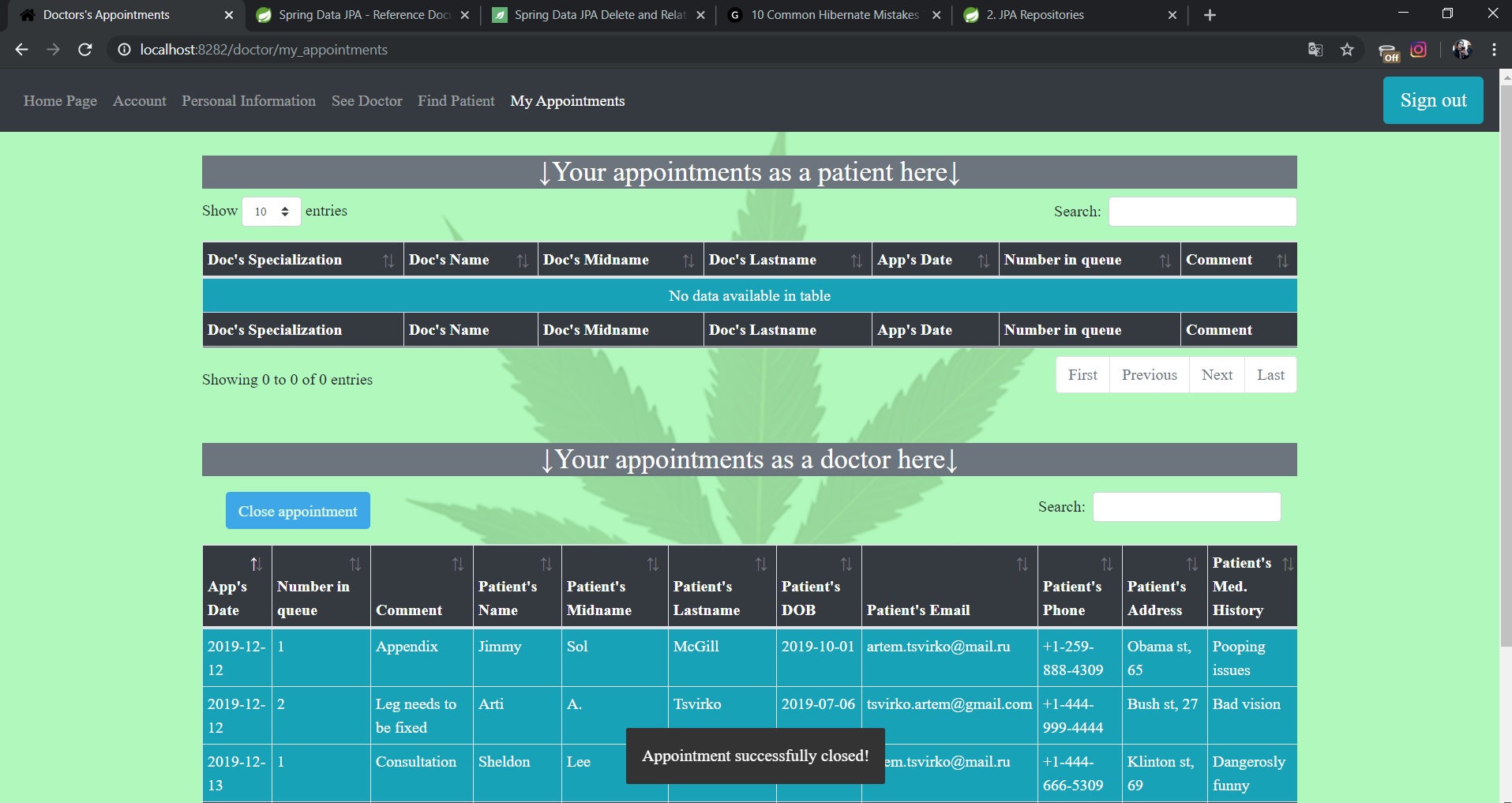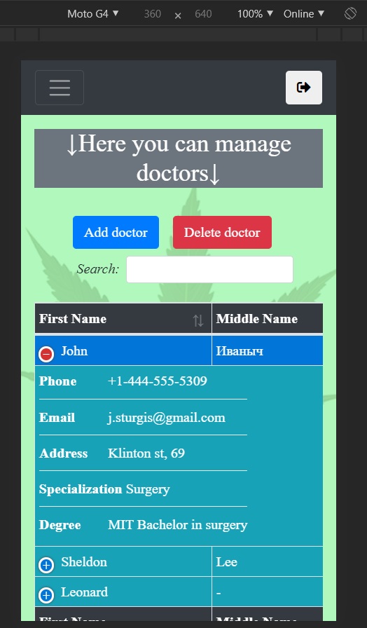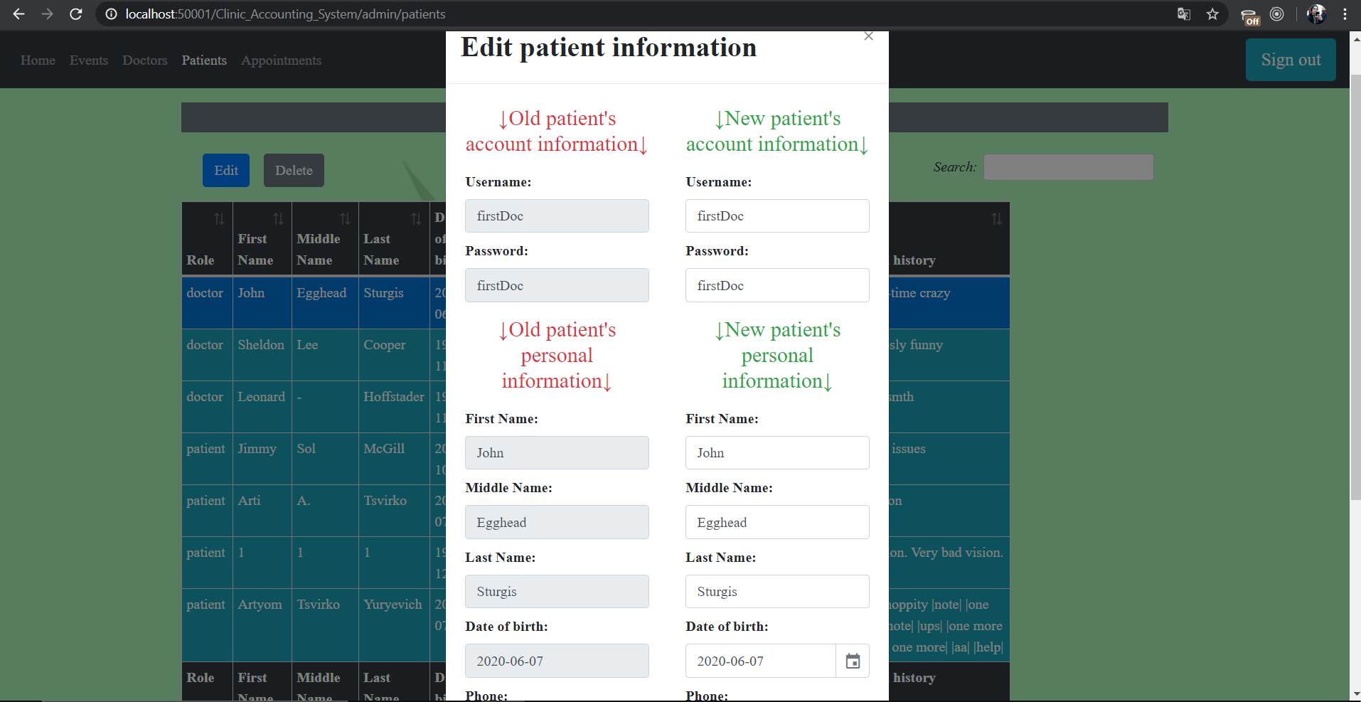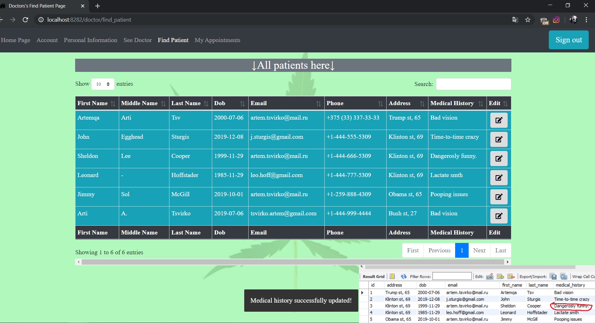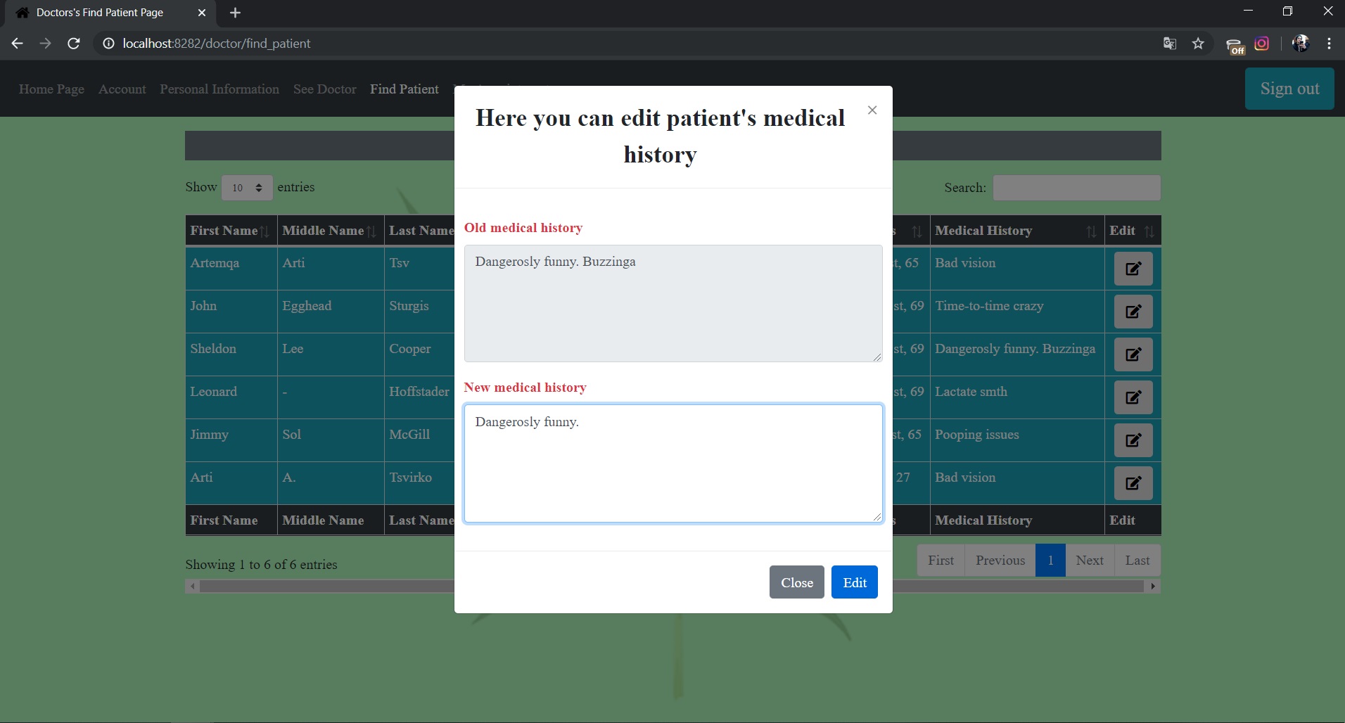 - 환자를보고 정렬/검색하고 환자의 병력을 편집 할 수 있습니다.